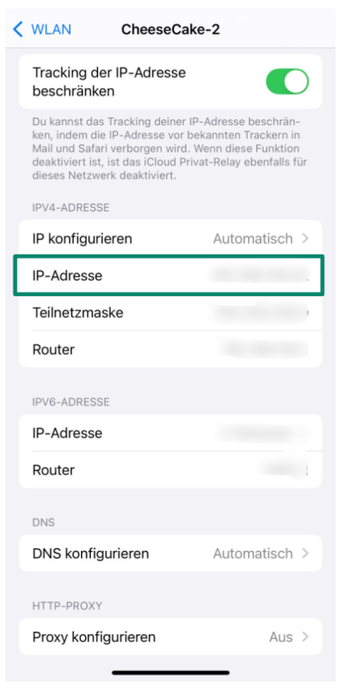 Die korrekte Subnetz-Maske sowie die Router-Adresse finden Sie in Ihren aktuellen WLAN-Einstellungen. Tippen Sie einfach auf das (i) neben dem Netzwerk, womit Sie verbunden sind.