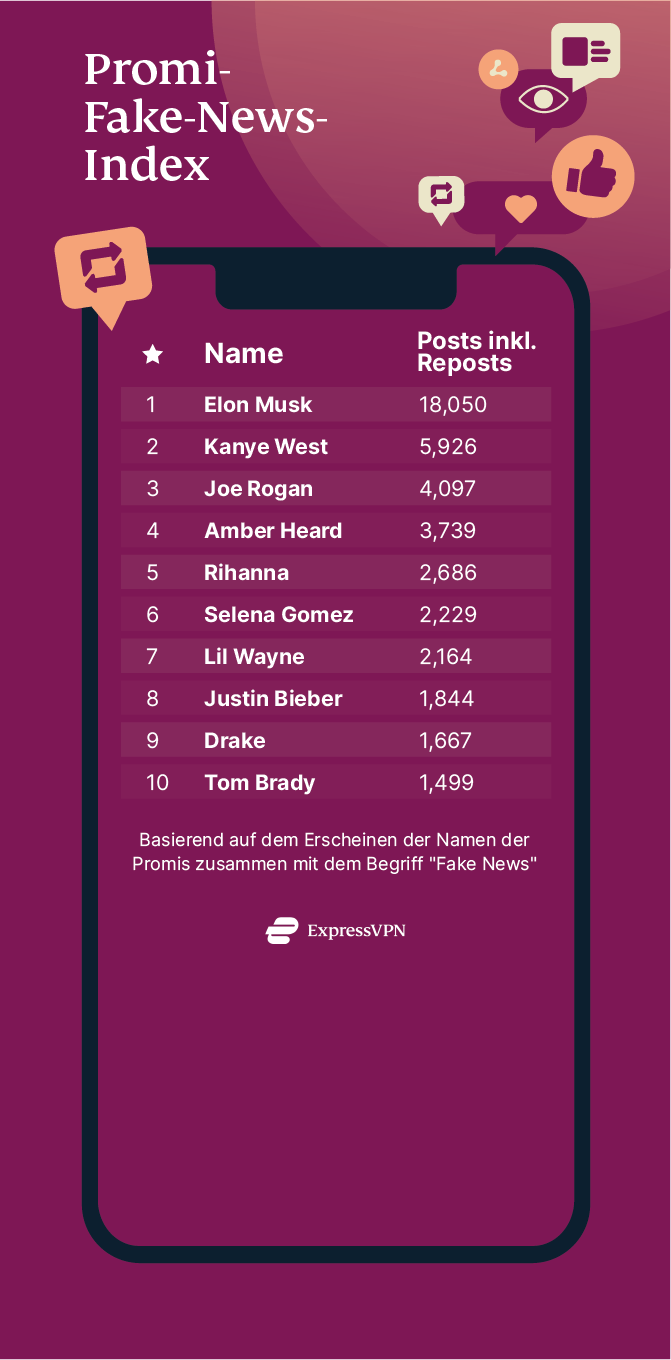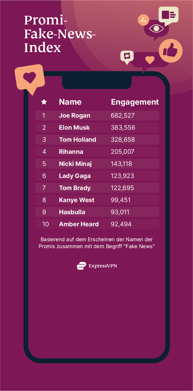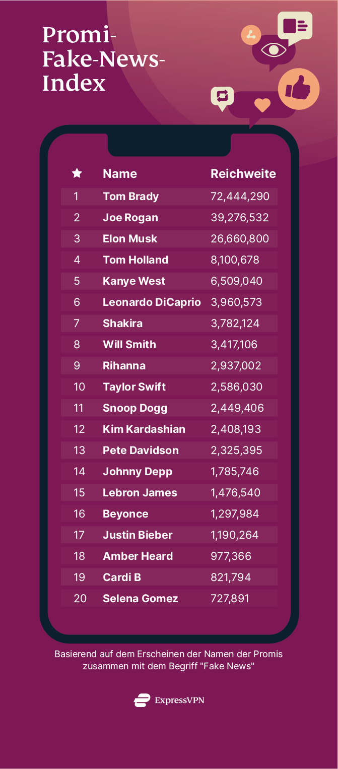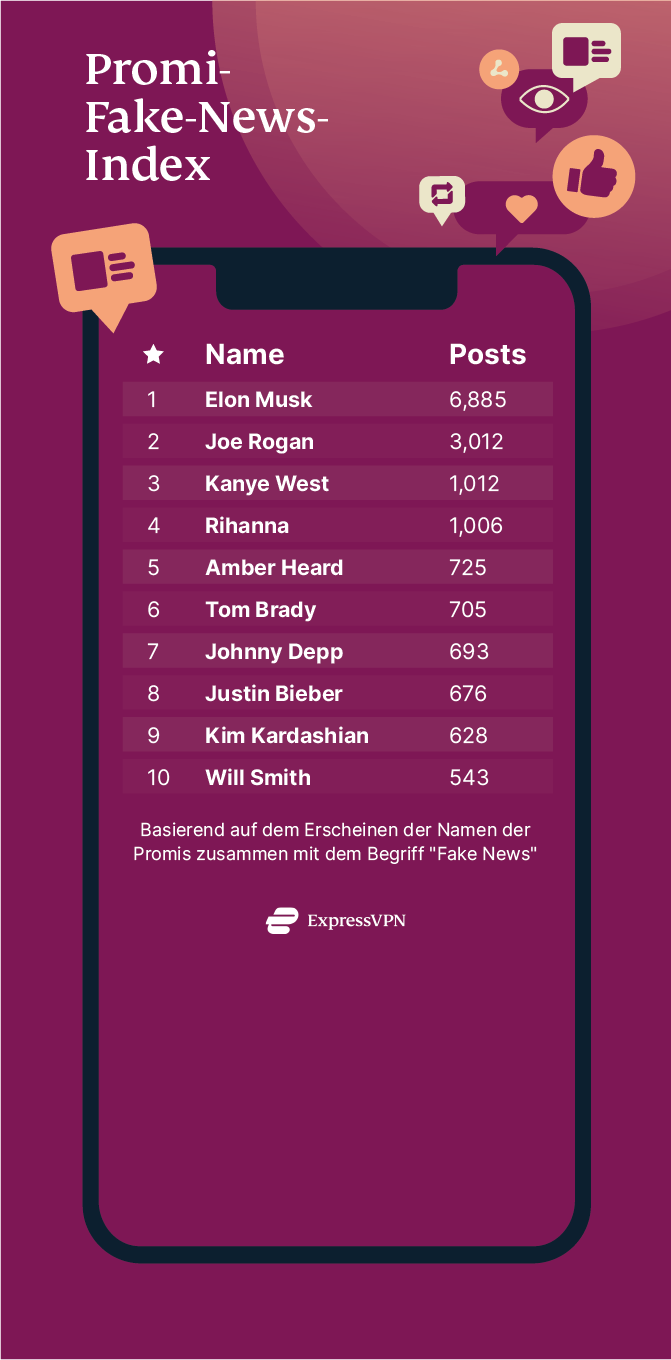 Rangliste: Promis, die am meisten mit Fake News in Verbindung gebracht werden