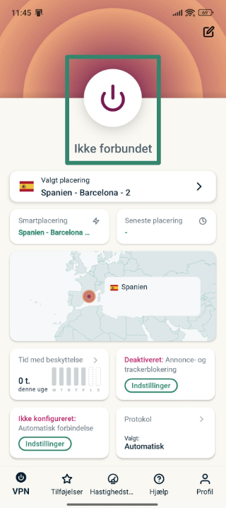 5. Tryk på knappen Forbind hurtigt for at oprette forbindelse til en server og maskere din IP-adresse.