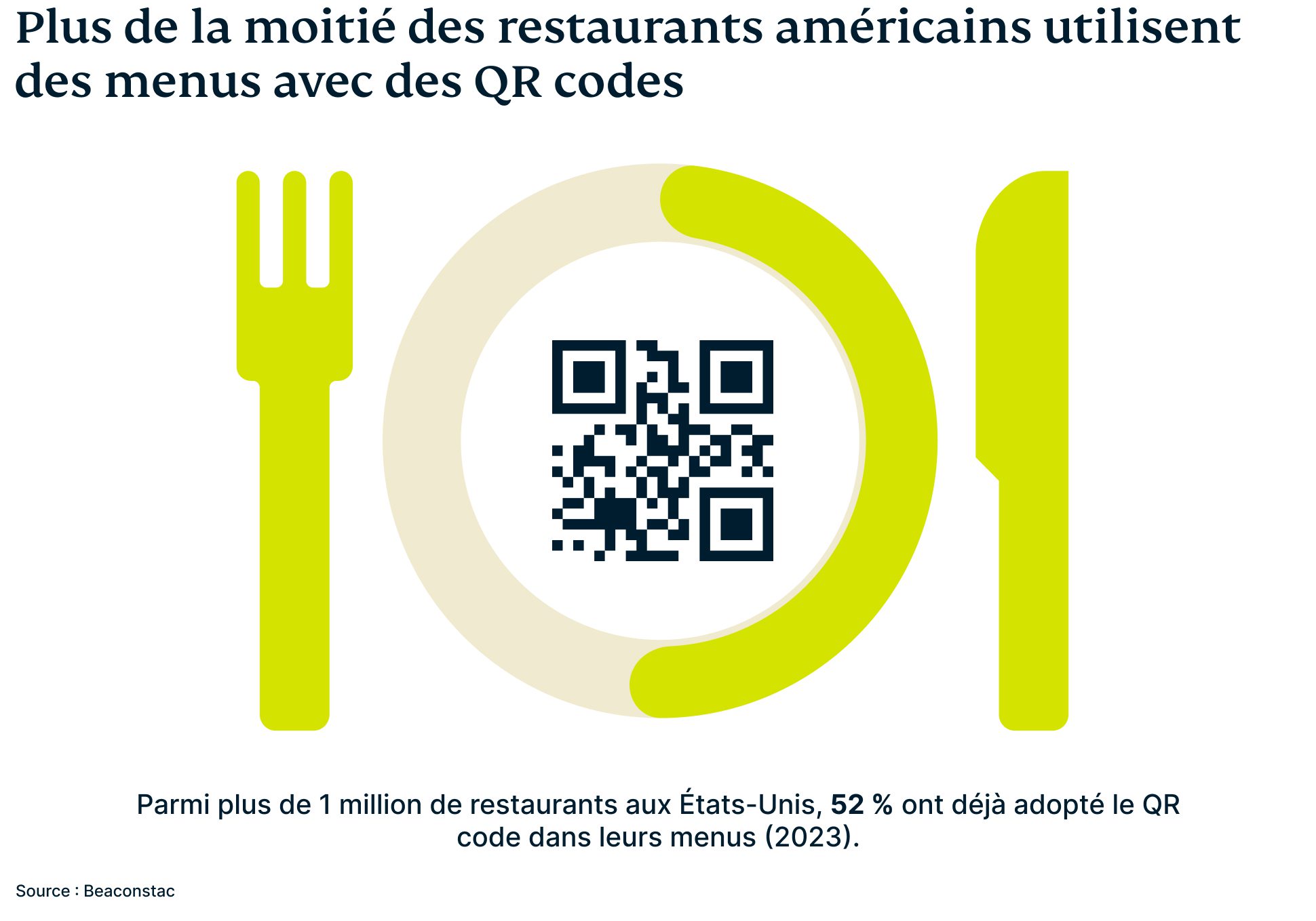 De nombreux restaurants ont commencé à mettre en place des QR codes en 2020 en pleine pandémie. Selon le Restaurant Readiness Index, 33 % des propriétaires pensent que les QR codes auront un impact positif sur le succès de leurs activités dans le futur.