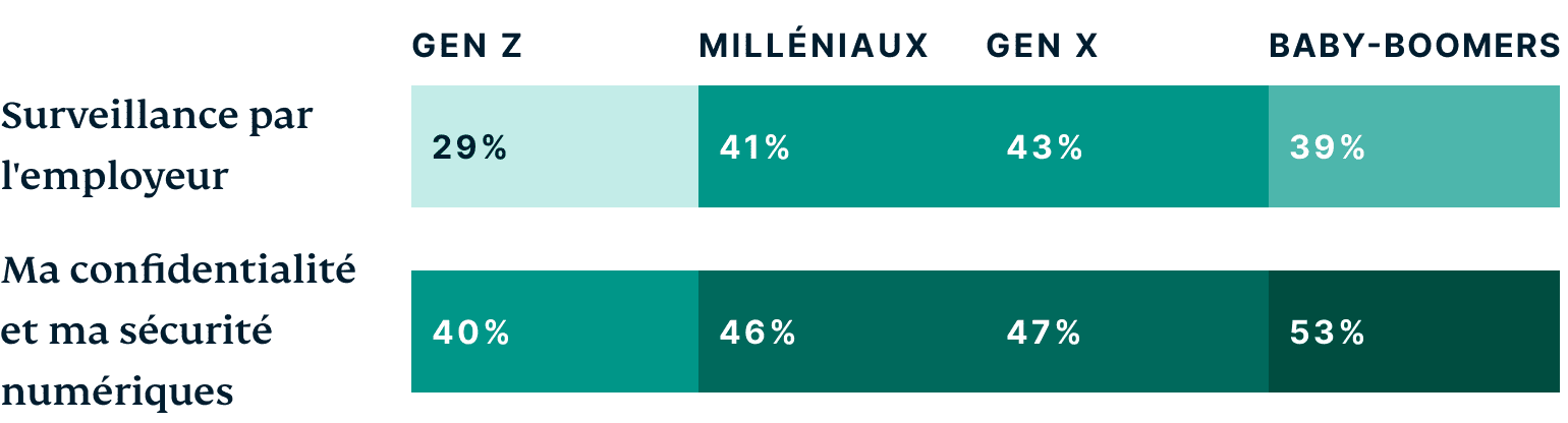 La génération Z était également la moins susceptible d'être préoccupée par la surveillance des employeurs, la vie privée numérique et la sécurité dans le métavers.