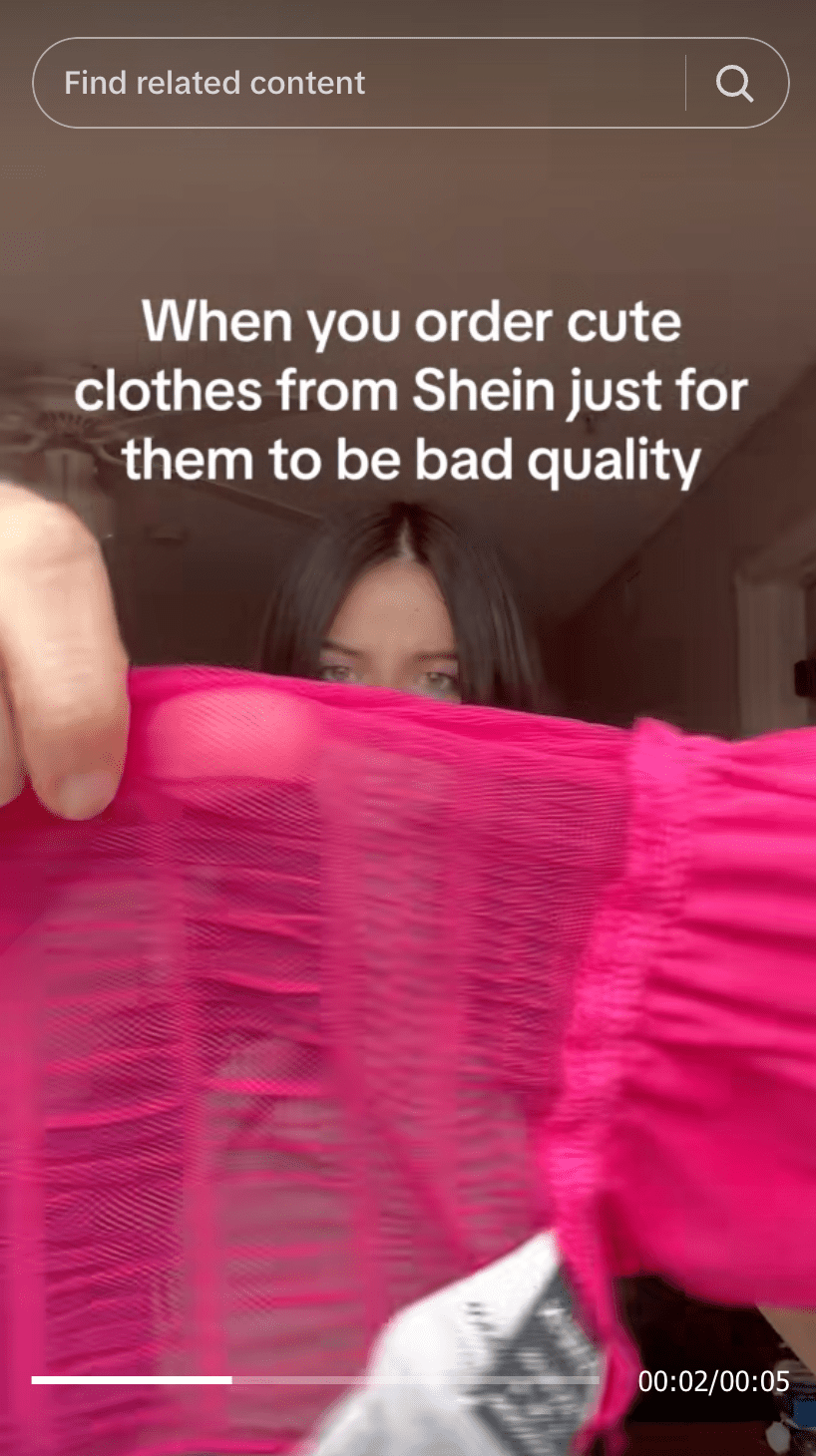 La capacità di Shein di aggiornare costantemente il suo inventario è ciò che lo rende così attraente, ma comporta notevoli svantaggi. Il modello di produzione rapido del brand implica che gli articoli siano spesso prodotti in massa, con una priorità sulla velocità piuttosto che sulla qualità. Di conseguenza, alcuni clienti segnalano di ricevere articoli che non corrispondono alla descrizione o che si deteriorano rapidamente.