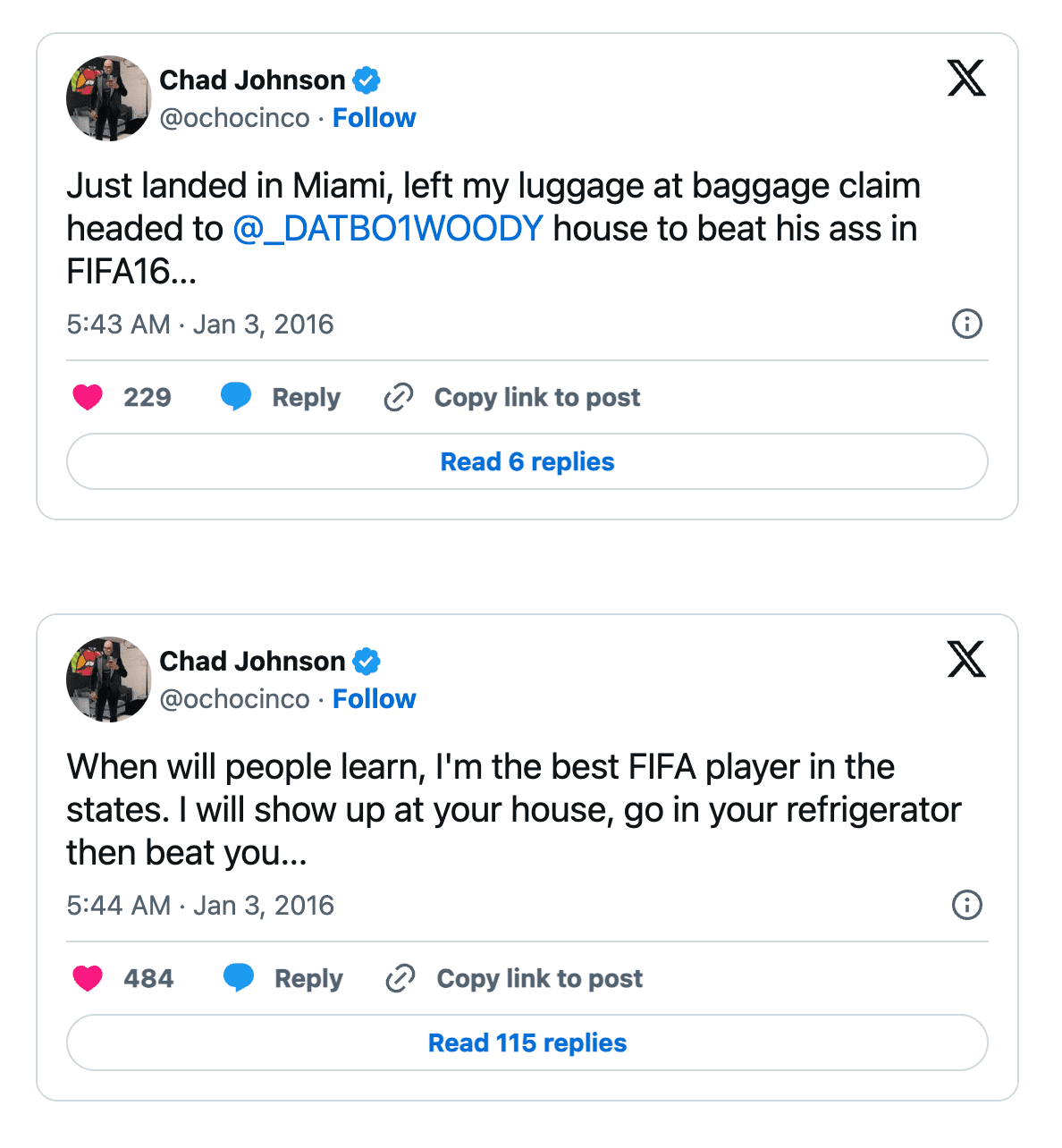 Johnson, also known as OchoCinco, is not only a celebrated former NFL player but also a notable figure in the gaming community. Post his football career, Johnson has channeled his competitive spirit into the realm of video games, particularly excelling in titles like Madden, Call of Duty, and FIFA.