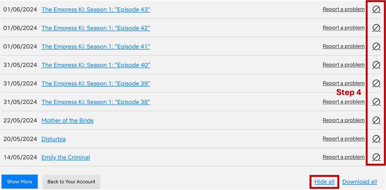 • Irreversible action: Once you hide items from your Netflix history, they cannot be recovered or unhidden. Make sure you are certain about removing specific titles or your entire history before proceeding.