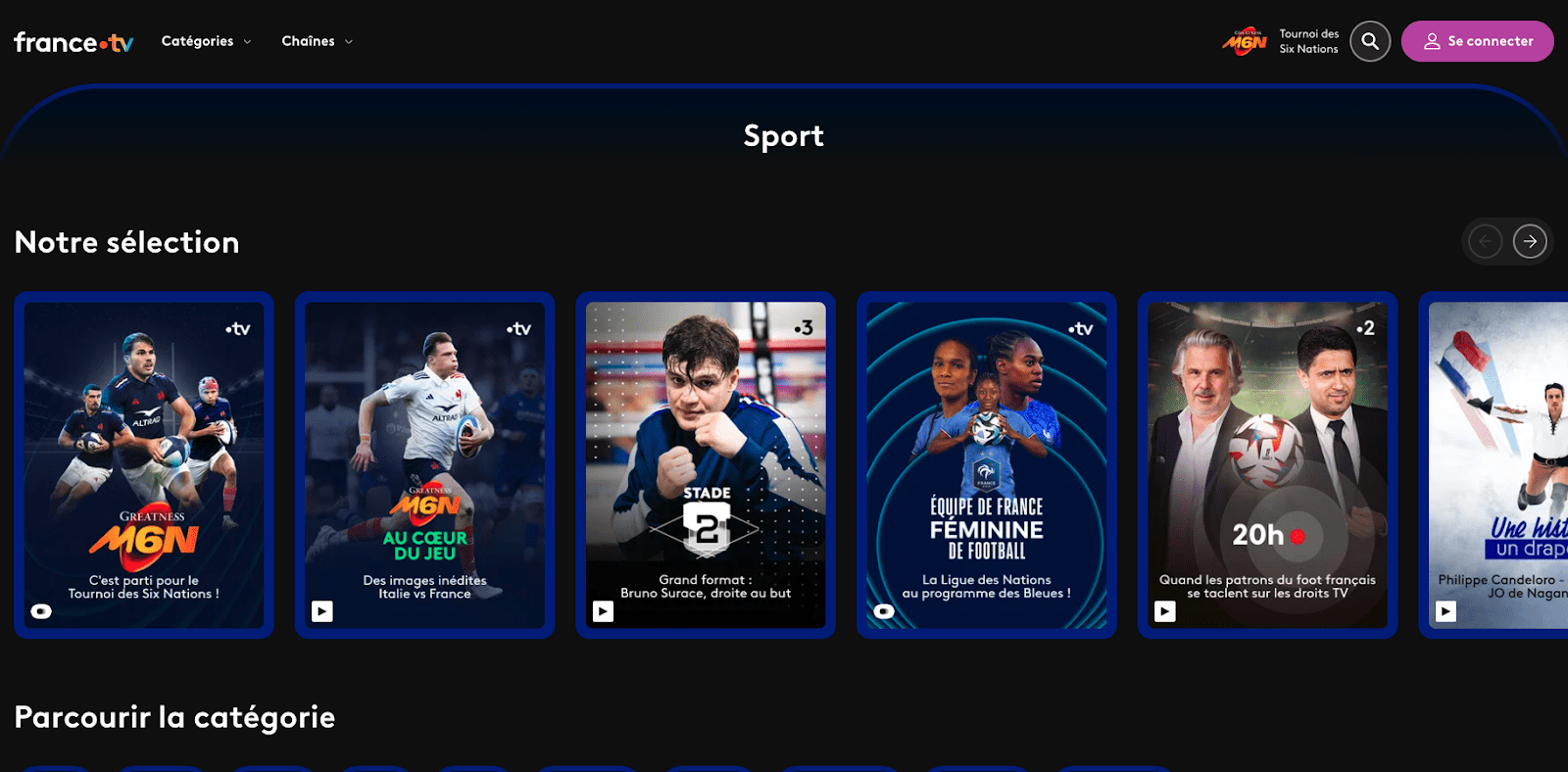 France TV has a good variety of live and on-demand French-language sports coverage, including cycling, tennis, and rugby. It’s the exclusive home of the Tour de France and the French Open in France. The platform also offers coverage of events like the Six Nations and Coupe de France.