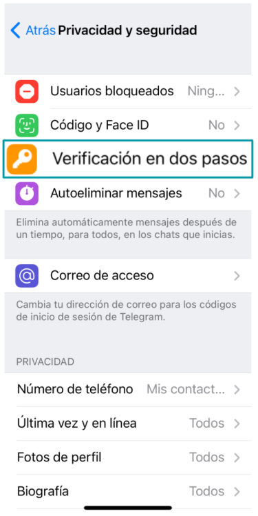 La autenticación de dos factores le añade una capa adicional de seguridad a tu cuenta de Telegram, de esta manera, aunque alguien conociera tu contraseña necesitaría un segundo código para iniciar sesión.