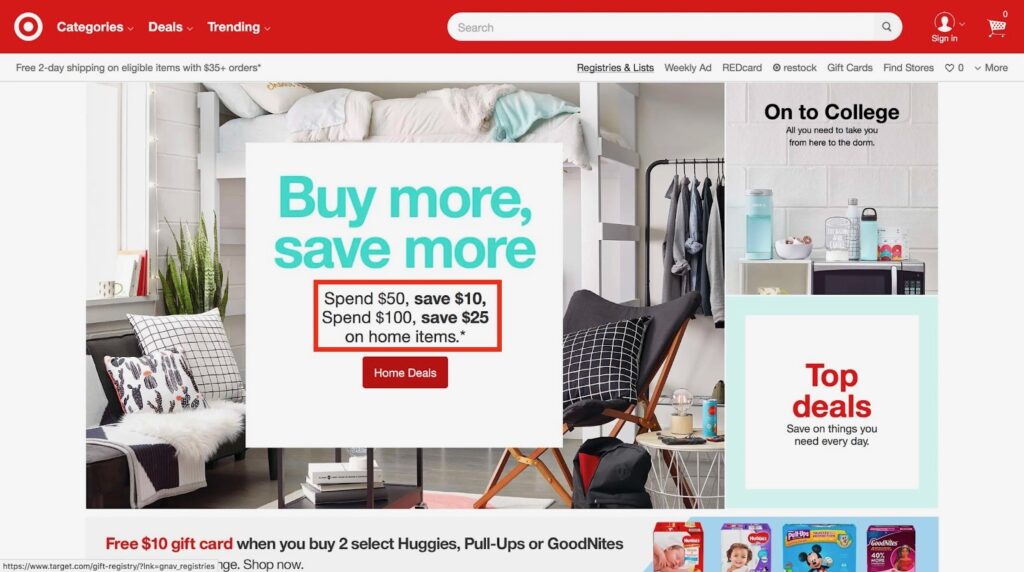 Proposer des codes promotionnels pour des réductions ou des articles gratuits avec les achats peut stimuler les dépenses supplémentaires. Les enseignes de mode et les épiceries en ligne utilisent fréquemment des codes promotionnels pour inciter les clients à effectuer leurs achats ou à dépenser jusqu'à un certain montant.