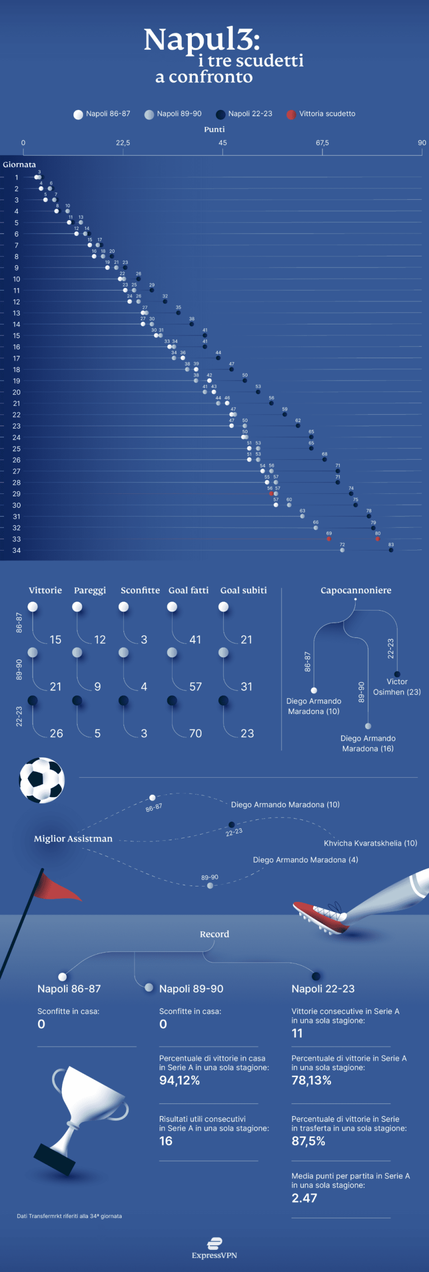 "La stagione 1986-1987 resterà per sempre nella memoria dei tifosi napoletani, il primo scudetto d'altronde non si scorda mai. Viene considerato ancora oggi come una sorta di riscatto per una città che in quegli anni non se la passava certo bene tra terremoti, povertà e criminalità organizzata. Un'annata incredibile che ci vide realizzare anche una clamorosa doppietta grazie al successo anche in Coppa Italia. Quest’anno invece è lo scudetto della programmazione, del progetto, di chi ha dimostrato con i  fatti che le idee contano spesso più dei soldi. Stavolta non c’è nessun riscatto della città che da anni è una vera e propria metropoli, una capitale europea che fa scuola in diversi settori, dalla moda, all’arte, passando per il teatro e la cultura."