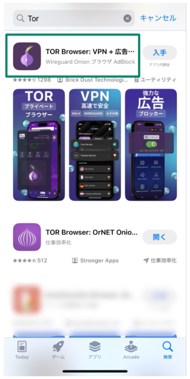 - Tor Projectが推奨するOnion BrowserをApp Storeからダウンロードしましょう。