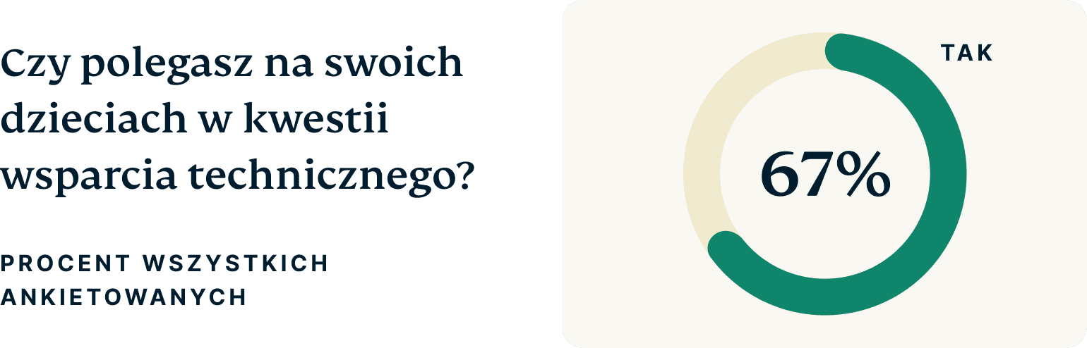 Czy korzystasz z pomocy technicznej swoich dzieci? (% ankietowanych, którzy odpowiedzieli „tak”).
