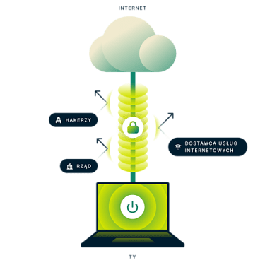 VPN (wirtualna sieć prywatna) to najprostszy i najskuteczniejszy sposób na zabezpieczenie własnego ruchu w Internecie i ukrycie tożsamości online. Kiedy łączysz się z bezpiecznym serwerem VPN, Twój ruch internetowy przebiega przez szyfrowany tunel, do którego nikt nie ma dostępu – ani hakerzy, ani rząd, ani Twój dostawca usług internetowych.