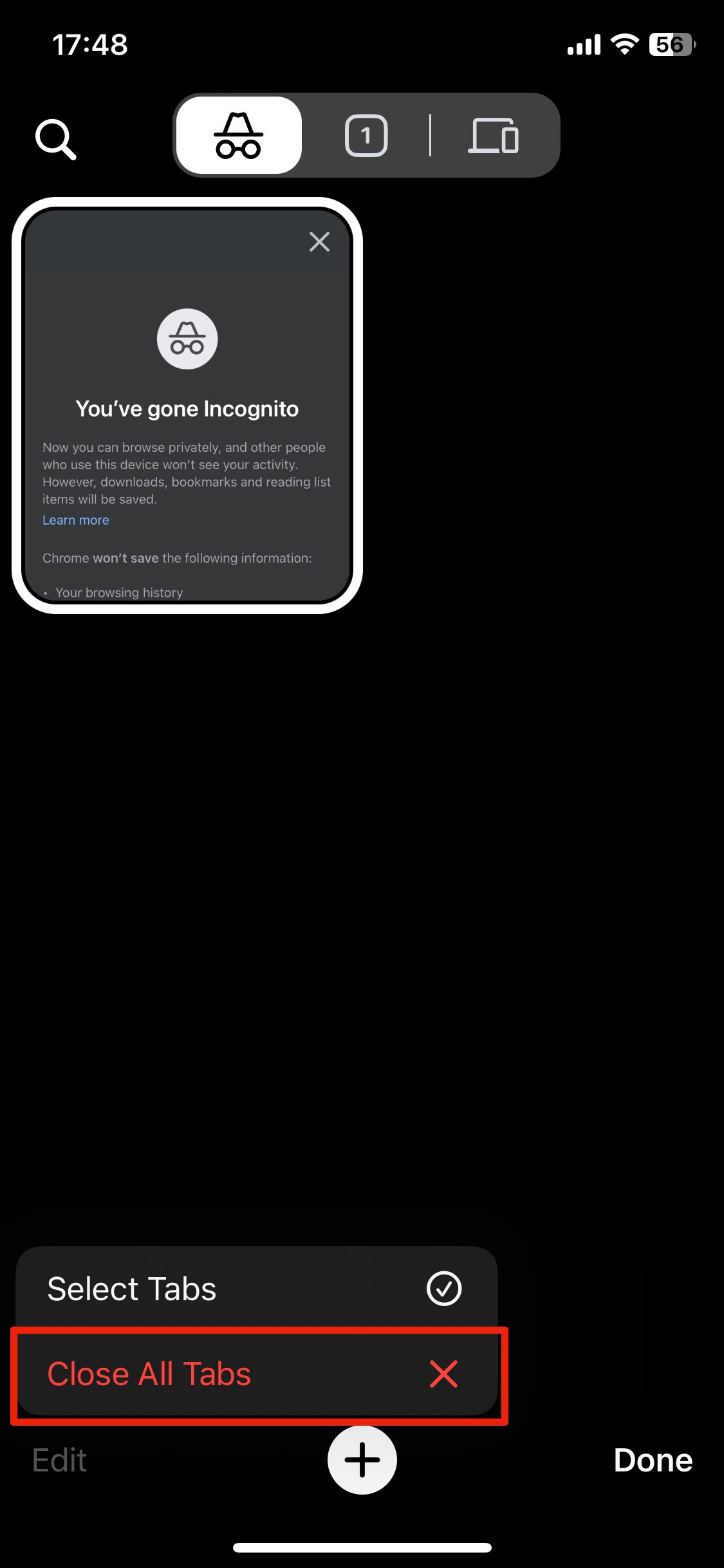 Se você preferir usar o Google Chrome no seu iPhone ou iPad em vez do Safari, não encontrará a Navegação Privada. Em vez disso, esse recurso é chamado de modo Anônimo. Veja como ativá-lo: